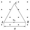 4、选择题 如图所示,ABC为与匀强磁场垂直的边长为a的等边三角形,磁场垂直纸面向外,比荷为e/m的电子以速度v0从A点沿AB方向射入,现欲使电子能经过BC边,则磁感应强度B的取值应为(?)