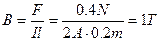 根据左手定则,磁感应强度方向水平向左。? (1分)