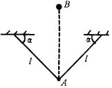 5、计算题 如图所示,用两根长度都为l的细线悬挂一个小球A,两悬挂点等高,线与水平天花板间的夹角都是α,使球A在垂直于纸面的平面内做小幅度的摆动,当A经过平衡位置的瞬间,另一小球B从A球的正上方自由下落,若B球恰能击中A球,求B球开始下落时离A球振动平衡位置的高度。