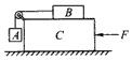 5、选择题 如图所示,长方体物块C置于水平地面上,物块A、B用不可伸长的轻质细绳通过滑轮连接(不计滑轮与 绳之间的摩擦),A物块与C物块光滑接触,整个系统中的A、B、C三物块在水平恒定推力F作用下从静止开始以相同的加速度一起向左运动。下列说法正确的是