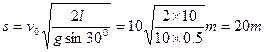 5、简答题 如图6—4—21所示,有一倾角为30°的光滑斜面,斜面长L为10m,一小球从斜面顶端以10m/s的速度沿水平方向抛出,求:(1)小球沿斜面滑到底端时水平位移s;(2)小球到达斜面底端时的速度大小。(g取10 m/s2)