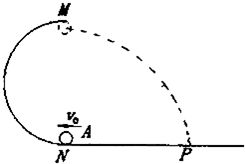 3、填空题 半径为R的竖直放置的圆轨道与平直轨道相连,如图所示,质量为m的小球A以一定的初速度由直轨道向左运动,并沿轨道的内壁冲上去.如果A经过N点时的速度为v0,A经过轨道最高点M时对轨道的压力太小等于小球的重力,重力加速度为g,求: