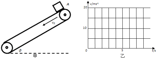 2、简答题 如甲图所示,传送带与水平方向夹角θ=30°长度很长.传送带正在做加速度a0=5m/s2的匀减速运动直至静止,运动方向为逆时针转动.在t=0时刻,传送带的速度v0=17.5m/s,恰在此时A端无初速度的释放一个m=1kg的黑色煤块,已知煤块与传送带之间的动摩擦因数μ=