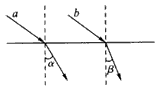 ![]() 2、选择题 如图所示,紫光从均匀物质a通过其他三层均匀物质b、c、d传播,每层的表面彼此平行,最后紫光又进入另一层均匀物质a。在各个表面的折射都画在图中(未画出相应的反射),则: 3、选择题 如图所示,a、b是两束不同的单色光平行地从空气射入水中,发生折射。α>β,则下列说法正确的是 4、选择题 如图所示是一列机械波从一种介质进入另一种介质中发生的现象.已知波在介质Ⅰ中的速度为v1,波在介质Ⅱ中的波速为v2.则v1∶v2为( ). 5、选择题 如图,直角三角形ABC为一透明介质制成的三棱镜的截面,且∠A=30°,在整个AC面上有一束垂直于AC的平行光线射入,已知这种介质的折射率n>2,则( ) |