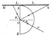 ![]() 参考答案:A、由图看出,a光通过玻璃砖后的侧簃大于b光的侧移,说明玻璃砖对a光的折射率较大,由v=cn,可知,a光在玻璃中的传播速度较小.故A错误. 本题解析: 本题难度:简单 2、计算题 (选修3-4选做题) 参考答案:解:如图所示,设水面为CF,A到水面点C的距离为L1,B灯与水面点C之间的距离为L2,人眼到水面上点F之间的距离为L3,点C、D之间的距离为L4,由A灯光的反射原理得 本题解析: 本题难度:一般 3、选择题 很多公园的水池底都装有彩灯,当一细束由红、蓝两色组成的灯光从水中斜射向空气时,关于光在水面可能发生的反射和折射现象,下列光路图中正确的是 参考答案:C 本题解析:红蓝光都要发生反射,红光的折射率较小,所以蓝光发生全反射的临界角较红光小,蓝光发生全反射时,红光不一定发生,故C正确。 本题难度:一般 4、填空题 某同学在做测定玻璃折射率的实验,将玻璃砖放在白纸上,然后用笔直接贴着玻璃砖画出了两个界面,由于笔头较粗,使得画出的两个界面都向外出现了一小段距离,如图所示,之后,他没有移动玻璃砖,直接插针做完了实验,他实验结果测得的折射率将______.(填偏大,偏小,不变) 参考答案:该同学笔头较粗,画出的两个界面都向外出现了一小段距离,如图虚线所示,作出光路图:黑线表示实际的光路,而红线是作图时的光路,可见,入射角没有变化,而折射角偏大,根据折射定律n=sinisinr,可知,他实验结果测得的折射率将偏小. 本题解析: 本题难度:一般 5、计算题 如图所示,半圆形玻璃砖的半径R=10 cm,折射率为 参考答案:解:作出光路如图所示 本题解析: 本题难度:一般 |