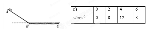 ![]() 2、计算题 (10分)一质量m=50kg的滑块,以vo =10m/s的初速度从左端冲上静止在光滑的水平面上的长为L=12m,高为h=12.5m的平板车,滑块与车间的动摩擦因数为 3、选择题 如图所示,t=0时,质量为0.5kg的物体从光滑斜面上的A点由静止开始匀加速下滑,经过B点后进入水平面(设经过B点前后速度大小不变),最后停在C点。测得每隔2 s的三个时刻物体的瞬时速度,记录在下表中。g取10m/s2,则下列说法中正确的是 4、选择题 我国道路安全部门规定:高速公路上行驶的最高时速为120km/h。交通部门提供下列资料: