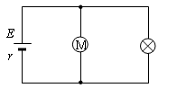 1、计算题 如右图所示,电源电动势E="10" V,内阻r=0.5Ω,标有“8 V,16 W”的灯泡恰好能正常发光,电动机M绕组的电阻R0=1Ω,求: