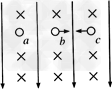 3、选择题 如图所示,在真空中匀强电场的方向竖直向下,匀强磁场方向垂直于纸面向里,三个油滴a、b、c带有等量同种电荷,其中a静止,b向右做匀速运动,c向左做匀速运动,比较它们的重力Ga、Gb、Gc间的关系,正确的是