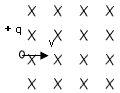 1、选择题 下图中带电粒子垂直进入磁场时所受的洛伦兹力的方向垂直纸面向里的是