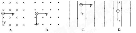 4、选择题 下列各图中,运动电荷的速度方向、磁场方向和电荷的受力方向之间的关系正确的是(?)