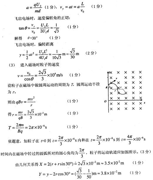 时粒子的位置坐标(X、Y)。(答案可以用根式表示,如用小数,请保留两位有效数字)