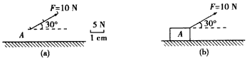 1、其他 如图所示,一放在水平面上的物体A受到大小为10N的拉力作用,该拉力方向与水平方向成30°斜向上,画出这个拉力的图示和示意图。
