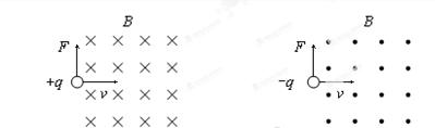 本题解析:由左手定则可判断洛伦兹力的方向。