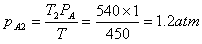 从T=450K升高到T2=540K,等容过程,