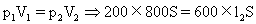 初态:p1=(760-560)=200mmHg? V1=(300+100+400)S=800S(mm3)