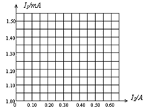 ⑶某同学根据他设计的实验测出了六组I1(电流表G的示数)和I2(电流表A的示数),请在下图的坐标纸上作出I1和I2的关系图线;