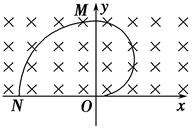 ![]() 4、选择题  如图,在一水平放置的平板MN的上方有匀强磁场,磁感应强度的大小为B,磁场方向垂直于纸面向里.许多质量为m带电量为+q的粒子,以相同的速率v沿位于纸面内的各个方向,由小孔O射入磁场区域.不计重力,不计粒子间的相互影响。下列图中阴影部分表示带电粒子可能经过的区域,其中 5、计算题  (14分)如图所示,在x轴上方的空间存在着垂直于纸面向里的匀强磁场,磁感应强度的大小为B.许多相同的离子,以相同的速率v,由O点沿纸面向各个方向(y>0)射入磁场区域。不计离子所受重力及离子间的相互影响。图中曲线表示离子运动的区域边界,其中边界与y轴交点为M,边界与x轴交点为N,且OM=ON=L。  |