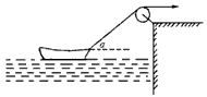 3、选择题 一个人在岸上以恒定的速度υ,通过定滑轮收拢牵引船上的绳子,如图当船运动到某点绳子与水平方向的夹角为α时,船的运动速度为