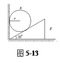1、简答题 如图5-13所示,斜劈B的倾角为30°,劈尖顶着竖直墙壁静止于水平地面上,现将一个质量与斜劈质量相同、半径为r的球A放在墙面与斜劈之间,并从图示位置由静止释放,不计一切摩擦,求此后运动中