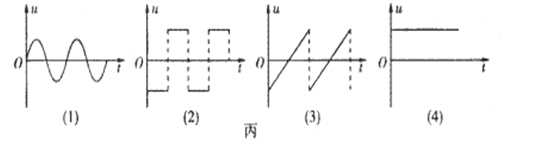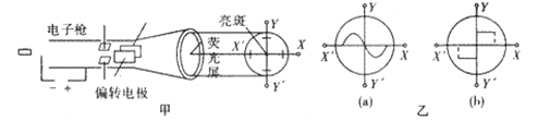 3、选择题 示波管的内部结构如图甲所示。如果在偏转电极XX/、YY/之间都没有加电压,电子束将打在荧光屏中心.如果在偏转电极XX/之间和YY/之间加上图丙所示的几种电压,荧光屏上可能会出现图乙中(a)、(b)所示的两种波形。则