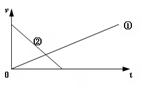 3、选择题 如图示①②是两个物体甲、乙做直线运动的速度图象,它们的加速度分别是a1、a2,则下列说法错误的是(?)