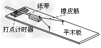 4、实验题 为探究力对同一个原来静止的物体所做的功与物体获得的速度的关系,可通过如图所示的实验装置进行:在木板上钉两个铁钉,将并接在一起的相同的橡皮筋的两端固定在铁钉的顶端,橡皮筋的中央都挂在小车前端上方的小挂钩上,通过拉动小车使橡皮筋伸长,由静止释放小车,橡皮筋对小车做功,再利用打点计时器和小车后端拖动的纸带记录小车的运动情况。现有主要的探究步骤如下: