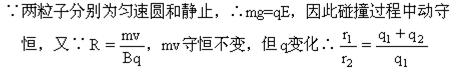 的竖直圆周匀速运动,当与原静止在圆周上的另一带有电量- 的微粒相碰后,合在一起沿半径为