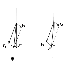 下图是两个同学做“互成角度的两个力的合成”实验时得到的结果。他们得到使橡皮筋的结点拉到O点时所需的两个力F1、F2及一个力时的F,并用平行四边形定则画出了等效力F’,如图所示。判断两人处理实验结果正确的是 。