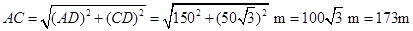 4、计算题 如图所示,某同学沿平直路面由A点出发前进了100 m到达斜坡底端的B点,又沿倾角为60°的斜面前进了100 m达到C点,求此同学的位移和路程。