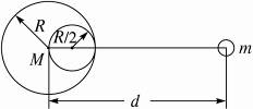 3、简答题 半径为R、质量为M的铅球内有一半径为R/2的球形空腔,空腔表面与铅球面内切,求这个空腔铅球以多大的力吸引质量为m的小球(体积不计).已知小球离铅球中心的距离为d,且在铅球中心与空腔中心的连线上,如图所示.