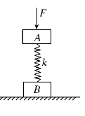 1、选择题 如图所示,质量分别为mA=2? kg和mB=3? kg的A?B两物块,用劲度系数为k的轻弹簧相连后竖直放在水平面上,今用大小为F=45? N的力把物块A向下压而使之处于静止,突然撤去压力,则(? )