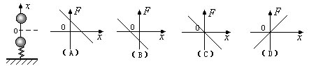 4、选择题 如图所示,质量为m的小球系在轻质弹簧上,平衡时静止在原点0,向下按小球(在弹性限度内)使其绕0点振动,取+x方向为力的正向,能正确反映小球所受合力F随位置x变化的图是(?)