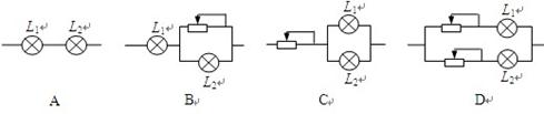 1、选择题  L1、L2两灯分别标有“110V,40W”和“110V,100W”,按不同方式接入220V电路,能使两灯正常发光,且符合节能的原则,应选用的电路接法是