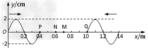 3、简答题  如图甲所示,在xOy平面内某介质中有一列波源位于O点沿x轴正方向传播的简谐横波,在t=0时,P点(x=20cm处)位于波峰,t=1s时,P点位于平衡位置,且速度方向沿y轴负方向,Q点(x=80cm处)位于平衡位置下方的最大位移处.已知此波的振幅A=20cm,波长λ>60cm,周期T>1s求: