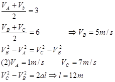 本题考查匀变速直线运动的推论,在匀变速直线运动中中间时刻的瞬时速度等于平均速度,由此可求得B点瞬时速度,由两端位移相等,可列式求解