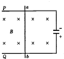 5、填空题 水平面中的平行导轨P、Q相距L,它们的右端与电容为C的电容器的两块极板分别相连如图所示,直导线ab放在P、Q上与导轨垂直相交,磁感应强度为B的匀强磁场竖直向下穿过导轨面.若发现与导轨P相连的电容器极板上带负电荷,则ab向______沿导轨滑动;如电容器的带电荷量为Q,则ab滑动的速度v=______.