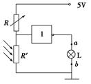本题解析:该逻辑电路是非门电路;当电阻R"受到光照时,其阻值将变得远小于R,则R′分压较小,即非门的输入端为0,输出为1,小灯泡L发光,此时a点电势高,故AC正确。