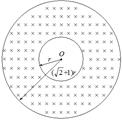 5、选择题  在一空心圆柱面内有一垂直于纸面的匀强磁场,磁感应强度为B,其横截面如图所示,磁场边界为同心圆,内、外半径分别为r和( )