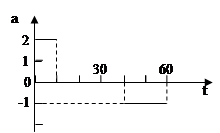 由加速度图像可知前10s汽车匀加速,后20s汽车匀减速恰好停止,因为图像的面积表示速度的变化,此两段的面积相等。最大速度为20m/s。所以速度图像为右图。然后利用速度图像的面积求出位移。