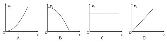 3、选择题 如图,物体做平抛运动时,描述物体在竖直方向上的分速度Vy(取向下为正)随时间变化的图像是