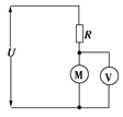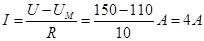 4、计算题 (10分)有一起重机用的是直流电动机,如图所示,其内阻r=0.8Ω,线路电阻R=10Ω,电源电压U=150V,伏特表的示数为110V,求: