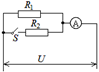 3、选择题 如图所示电路,电压U保持不变,当开关S断开时,电流表A的示数为0.6A,当开关S闭合时,电流表的示数为0.9A,则两电阻阻值之比R1: R2为(?)。