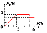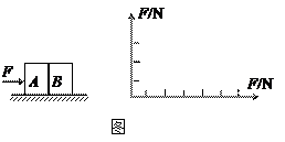 5、实验题 如图10所示,完全相同的A、B两物体放在水平面上,物体与水平面间的动摩擦因数均为0.2,每个物体重G=10N,设两物体与水平面间的最大静摩擦力均为2.5N。若对A施加一个由零均匀增大到6N的水平推力F,则A所受的摩擦力F1随推力F变化的情况请在图中作出。