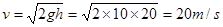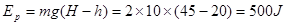5、填空题 一小球的质量是2kg,从距地面为45m高处由静止自由下落(空气阻力不计).下落20m时具有的重力势能为? _______ J,此时重力的瞬时功率为? ________ W(取地面为零势能面)。