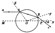 倍,与MN所成的角α=30°,求透明球体的折射率。