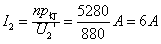 (2)因为U2=U2"+I2R=880V+6×4V=904V