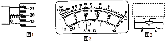 (2)使用多用电表粗略测量出此圆柱体的阻值时,选择开关位置时×1档位时,操作步骤正确,表盘的示数如图2所示,则该电阻的阻值约为______Ω;