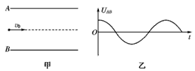 3、选择题 如图甲所示,一电子以v0的初速度沿平行金属板的轴线射入金属板空间。从电子射入的时刻开始在金属板间加如图乙所示的交变电压,假设电子能穿过平行金属板。则下列说法正确的是