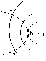 5、选择题 一带电粒子射入一固定在O点的点电荷的电场中,粒子运动的轨迹由a-b-c,如图所示,图中实线是同心圆弧,表示电场的等势面,不计重力,可以判断(?)
