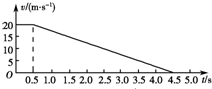 1、简答题 一辆汽车正在以c=20m/s的速度在平直路面匀速行驶,突然,司机看见车的正前方,处有一位静止站立的老人,司机立即采取制动措施.此过程汽车运动的速率随时间的变化规律如图所示,g取10m/s2,求: